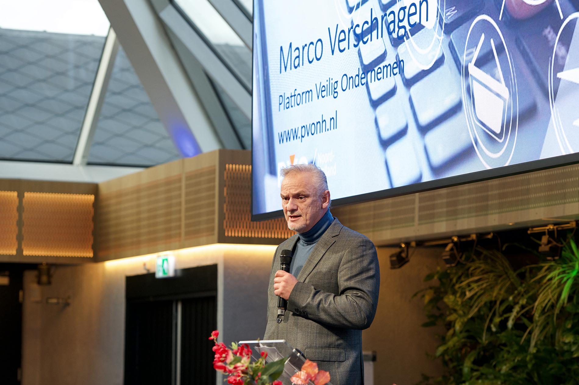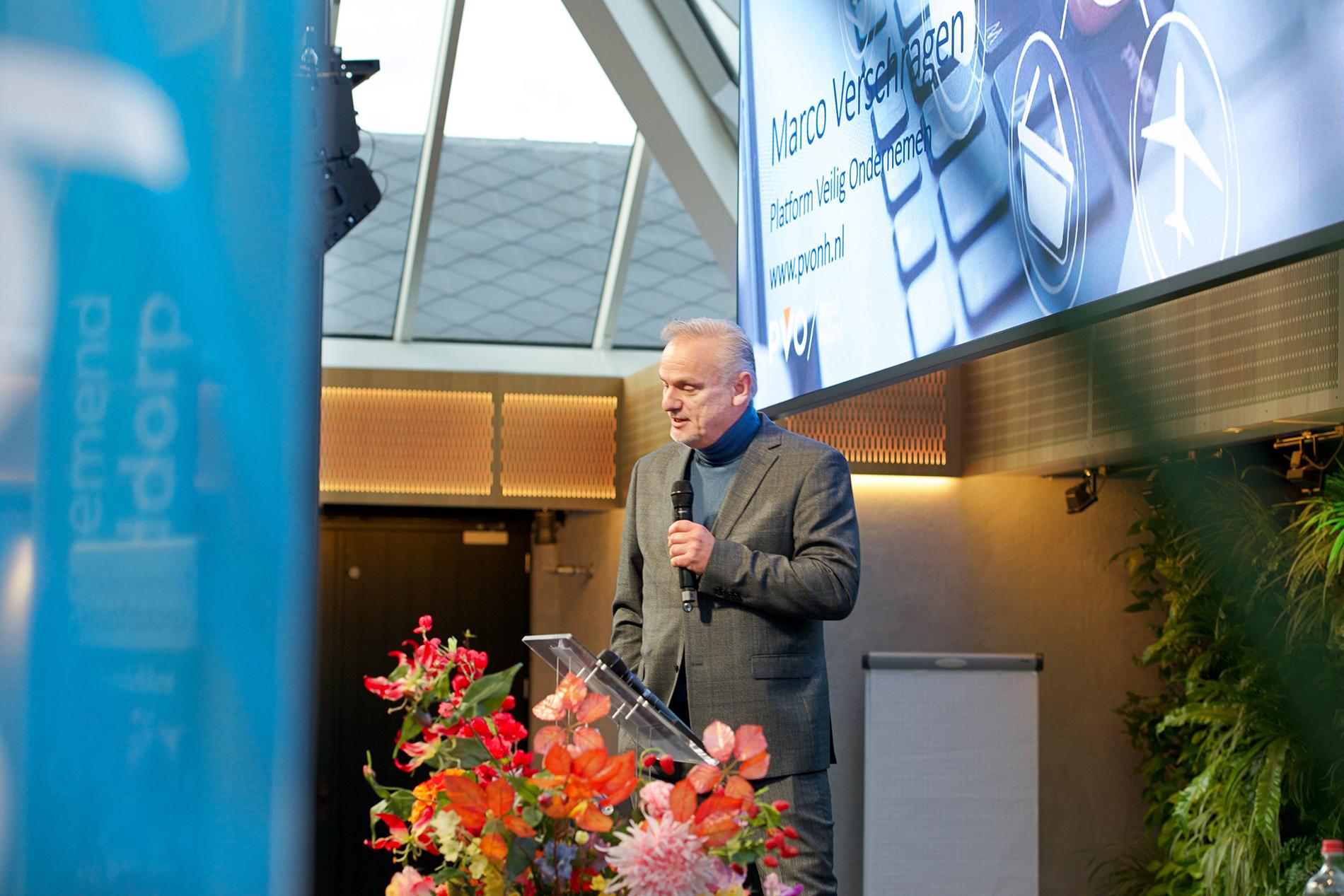Dagvoorzitter Annemiek Holkenboer (MeerOmroep) leidde het evenement in goede banen. Ze introduceerde als eerste spreker burgemeester Marianne Schuurmans. “De moeder van onze gemeente”. De burgemeester sprak over weerbaar en de noodzaak om voorbereid te zijn op ernstige verstoringen van de dagelijkse (ondernemers) routine. Stroomuitval, cyberaanvallen, extreme weersituaties. Wanneer speelt dit ook bij ons? “Denk niet: dat valt wel mee. Denk vooruit! Samen focussen op zelfredzaamheid is een absolute noodzaak.” Tweede spreker was Marco Verschragen, programmadirecteur van de stichting Platform Veilig Ondernemen Noord-Holland. Het platform biedt een publiek-private samenwerking tussen het georganiseerde bedrijfsleven, de politie, het OM en de gemeenten. Zijn verhaal ging over veilig kunnen ondernemen in een tijd met steeds hardere criminaliteit.