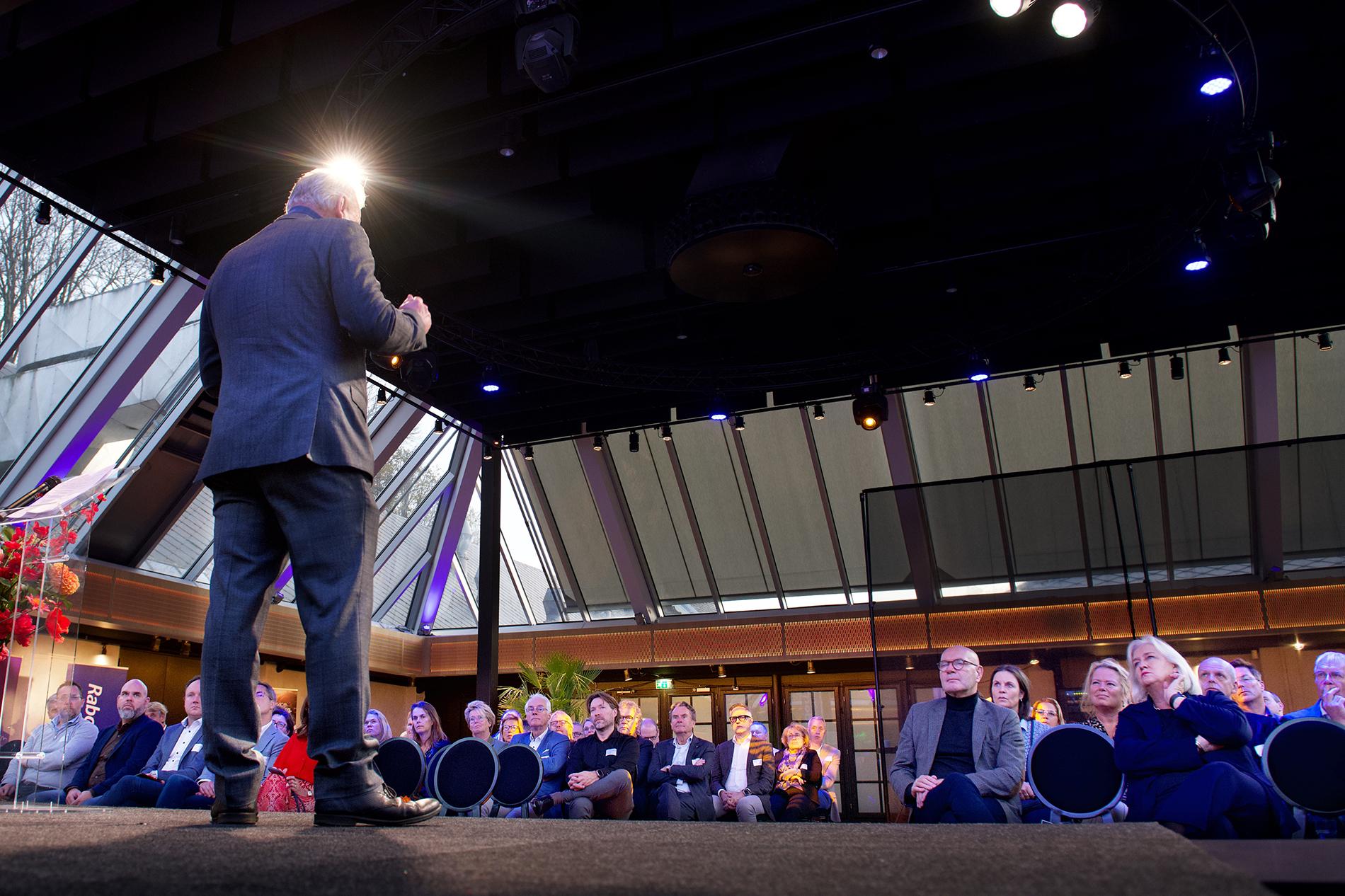 Peter van Heerde, sectormanager retail en groothandel non-food bij Rabobank, belichtte de term wendbaarheid. Voor elke ondernemer die in deze tijd de strijd moet aangaan met de oprukkende digitalisering en e-commerce extra belangrijk. Verdwijnt de winkelstraat definitief uit het straatbeeld? vroeg Van Heerde zich met zijn publiek af. Het antwoord? Ja en Nee! Slotspreker was Sander Klos, business accelerator, die vertelde over 5Fortyfive, de door hem ontwikkelde formule die elk bedrijf kan brengen bij de zo gewenste groei.